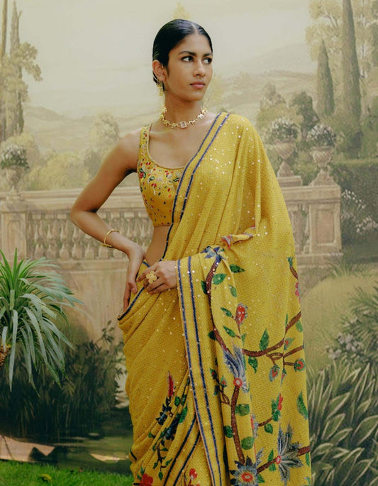 Black Heavy Georgette with Embroidery Sequins Work Lace Border with Blouse