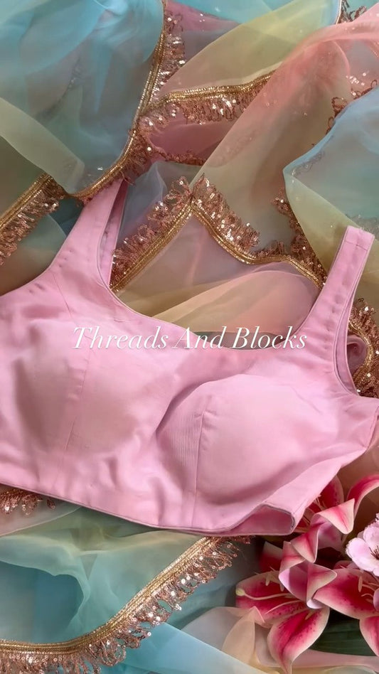 Beautiful Pastel Embroidery Multi-Thread Work Saree